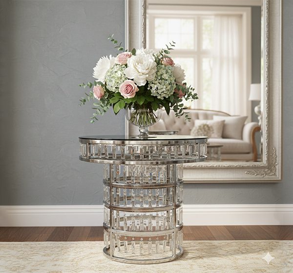• Chandelier-inspired base for a dramatic statement