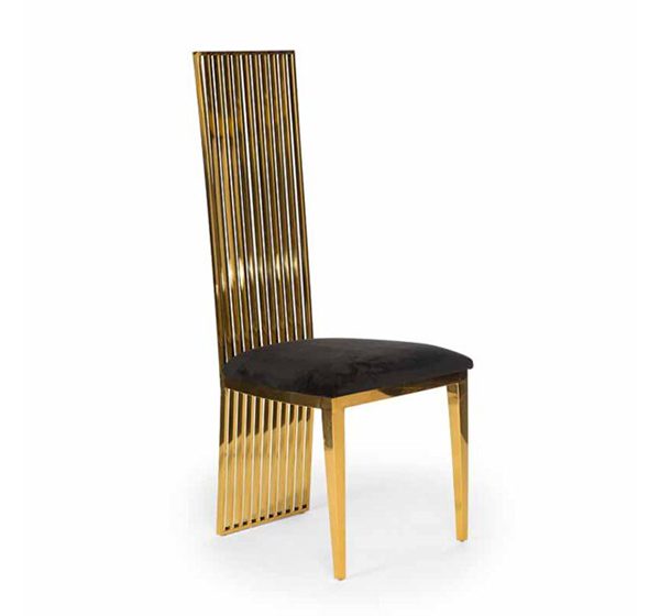 Elevate your event seating with our High Back Dining Chair in Black & Gold, a perfect blend of elegance, comfort, and modern style. Featuring a sleek black upholstered seat and backrest framed by a luxurious gold finish, this chair adds sophistication to weddings, banquets, corporate events, and upscale celebrations. The high back design provides exceptional support for guests, while the sturdy construction ensures durability and reliability for frequent rental use. Lightweight yet strong, it is easy to arrange and stack, making setup and breakdown seamless. Ideal for dining arrangements, head tables, or event seating where style and comfort are equally important.