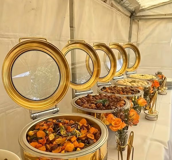 Present your buffet in elegant style with our Round Golden Glass-Top Food Warmer. Designed with a luxurious gold finish and a sleek glass lid, this chafing dish adds sophistication and visual appeal to any dining setup. The round design creates a refined presentation, while the transparent glass top allows guests to easily view the contents without lifting the lid, helping to maintain optimal serving temperature. Built with a sturdy frame and reliable warming system, this food warmer combines beauty and functionality, making it a standout piece for upscale events and formal gatherings.